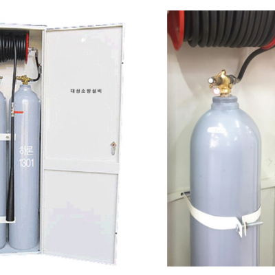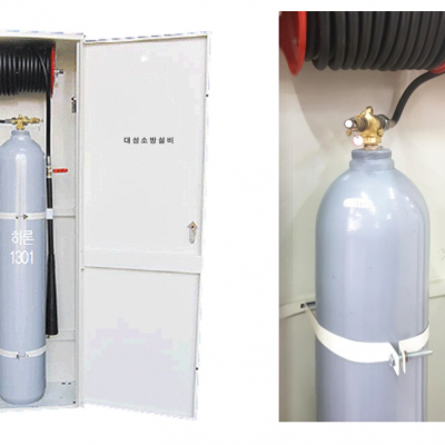 하론팩키지 : 하론 실런더 2통 캐비넷 형 자동 소화설비 입니다.가스계소화설비방식과는 달리 별도의 저..